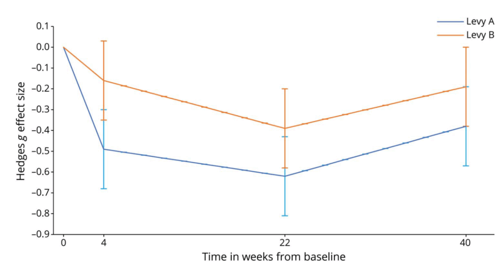⇒Levy Aの方がLevy Bよりも改善効果があるものの,Levy Bもプラセボよりは改善効果あり