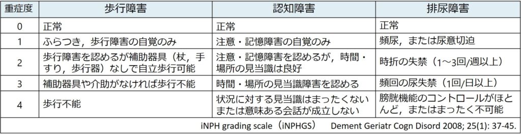 ・歩行障害,認知障害,排尿障害それぞれについて0~4の5段階で評価